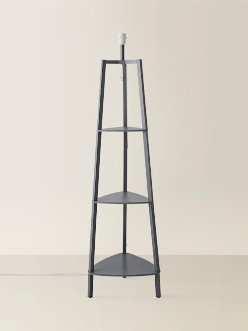 Meet your new favourite multitasker! This matte black wood tripod floor lamp base doesn't just light up the room, it levels up your space with three built-in shelves, perfect for showing off your plants, books or favourite little treasures. Its sleek, minimal design suits any interior style, and it's ready to pair with a lampshade of your choice. Stylish, practical and full of charm. It's the perfect blend of function and flair!