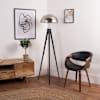 If you're looking for a modern and contemporary feel in your home, the Horvit Black Tripod Floor Lamp with Brushed Chrome Domed Shade is a perfect choice.