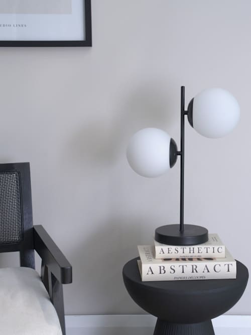 Jas Black 2-Way Table Lamp with Glass Globe Shades