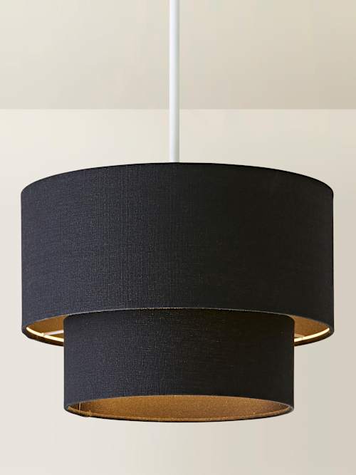 The Jodie 2 tier black linen drum shade is your ceiling's new best friend! With its classic black linen and dreamy layered look, Jodie brings instant charm and a splash of style to any room. And guess what? It's an easy-fit design, so no tools, no fuss. Just pop it on and you're golden. Perfect for any clean, modern space that needs a little ooh la la! Jodie's here to light up your life literally. Our shades come with a 4cm opening for E27 lamp holders, and we’ve added a handy reducer ring that brings it down to 3cm so it’s E14 friendly too.