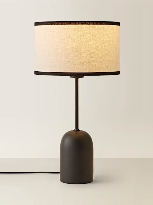 The Kaiden dome table lamp brings bold style and sleek vibes to your space. With its matte black finish and streamlined dome design, it's topped with a natural linen shade featuring a contrasting black trim. The colour match cable adds that extra touch of elegance, keeping things polished from top to bottom. Whether it's lighting up your desk, bedside, or reading nook, Kaiden is the perfect blend of function and flair. Who knew minimalism could be this exciting?