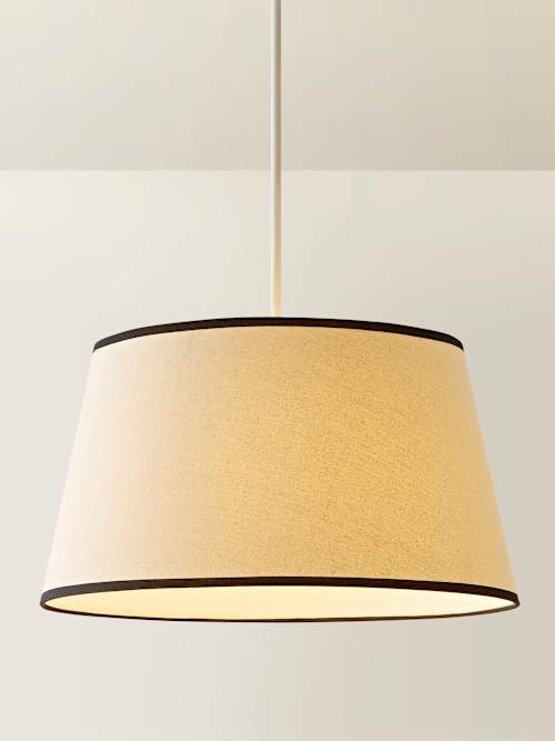 Big shade, big style. The Aspen large tapered linen shade with black trim brings sleek elegance to any room, whether it’s topping a lamp or lighting up your ceiling. Its timeless tapered design diffuses a warm, inviting glow, perfect for cosy evenings and chic living spaces. Available in three handy sizes and a variety of colours, it’s a fuss-free way to switch up your look. Whether you’re after bold drama or subtle charm, it’s one simple shade offering endless ways to shine. Our shades come with a 4cm opening for E27 lamp holders, and we’ve added a handy reducer ring that brings it down to 3cm so it’s E14 friendly too.