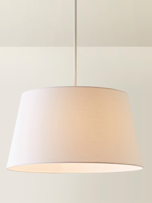Big shade, big style. The Aspen large white tapered shade brings sleek elegance to any room, whether it’s topping a lamp or lighting up your ceiling. Its timeless tapered design diffuses a warm, inviting glow, perfect for cosy evenings and chic living spaces. Available in three handy sizes and a variety of colours, it’s a fuss-free way to switch up your look. Whether you’re after bold drama or subtle charm, it’s one simple shade offering endless ways to shine. Our shades come with a 4cm opening for E27 lamp holders, and we’ve added a handy reducer ring that brings it down to 3cm so it’s E14 friendly too.