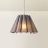 - This pleated, tapered, linen look ceiling pendant shade is available in 4 colours – sage, lilac, white, and grey.