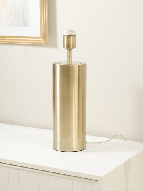 Modernising? We've got just the thing. The lexy touch table lamp in antique brass brings in clean shapes and a modern design to add a little polish and a lot of wow to any living room, bedroom, dining room or hallway. Mix and match with a number of different lamp shades to get your perfect finished product. We suggest starting off with the reni. A metal table lamp base with touch on/off feature. Base only. Try matching it with a shade in your favourite colour. An antique brass cylindrical, modern design. Top off with your choice of shade to sway the style your way! Add a pop of brass to your space or tie all your brass finishes together with this modern design. Perfect for living rooms,