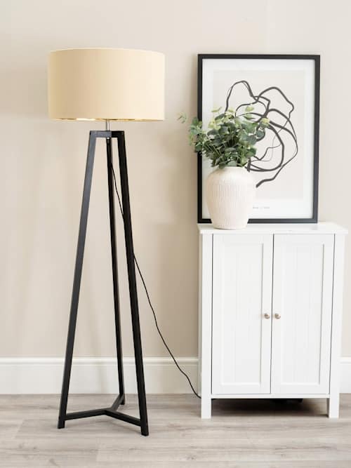 Lottie Black Tripod Floor Lamp with Beige and Gold Shade