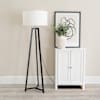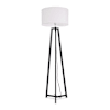 The Lottie tripod floor lamp in black wood is the perfect neutral base for this white fabric drum shade. The black wood base adds a chic and modern feel to any home.