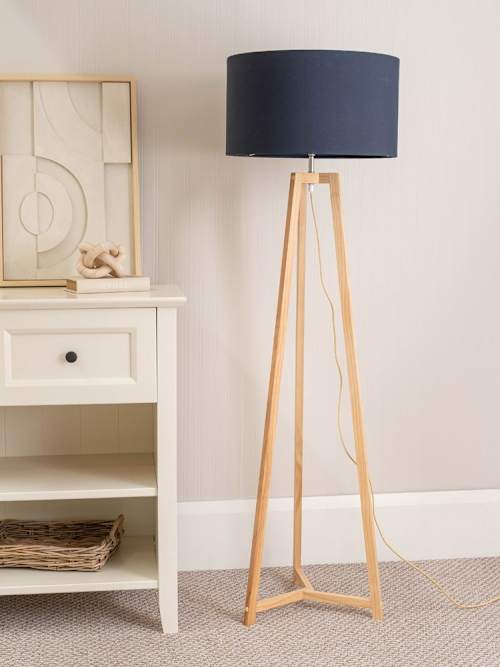 Lottie Natural Wood Tripod Floor Lamp with Navy Shade