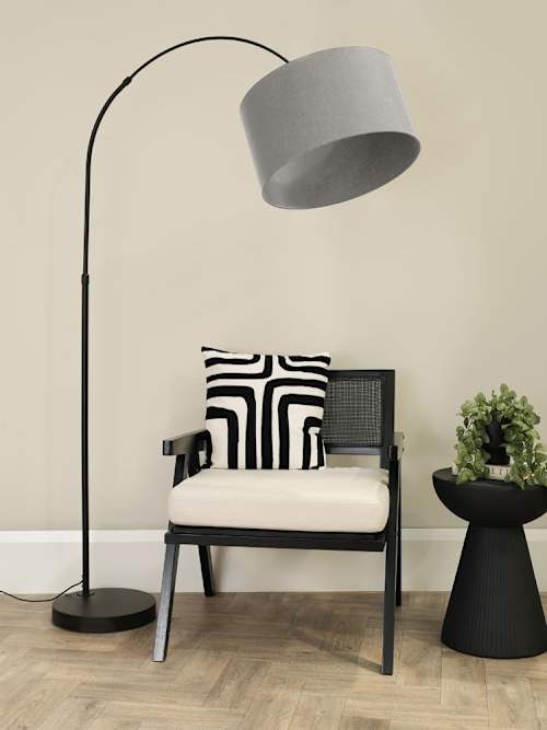 The louis arch floor lamp in black is a modern take on a vintage classic. Perfect for reading lights, slotting beside or behind sofas so the light hangs overhead. Paired with a grey drum shade. A standalone metal arch floor lamp base, with a drum shade. Featuring a foot switch on a convenient 2cm cable. An iconic arch floor lamp style in a modern black colourway. Paired with a fabric drum shade in grey. Fits perfectly behind or beside a sofa to hang over head, over side tables. A stylish touch to any tight corner. Requires 1x e27 bulb, max 1w. Personalise the lighting experience with your choice of cool, natural, warm or smart bulb. Doesn't require installation, just plug into any uk plug