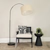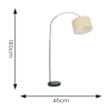 - An iconic arch floor lamp style in a modern black colourway. Paired with a fabric drum shade in natural.