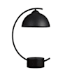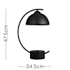 The Matt Black Lua Art Deco table lamp features a striking curved stem, pivoted on a grey stand and gently balancing a beautiful, curved dome shade