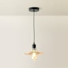 The Lucrezia black pendant light with amber frilled glass shade is a great way to bring a feminine industrial edge to any space.