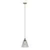 The sleek matte gold finish and clear ribbed glass dome shade give it a sophisticated look, while the pendant design ensures that it will make a statement in any room.