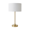 Maeve Brushed Gold Bobbin Table Lamp with White Fabric Shade