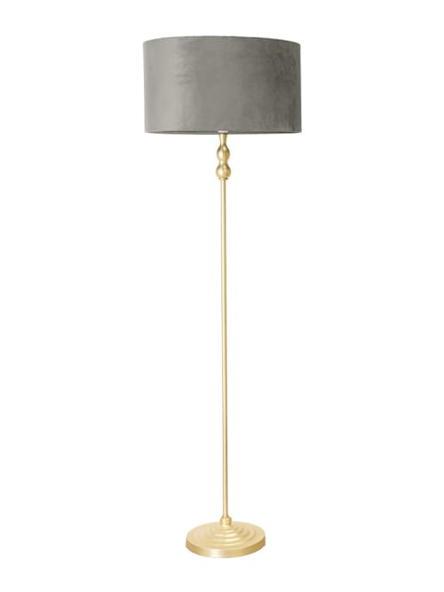 Maggie Gold Candlestick Floor Lamp with Grey Velvet Shade