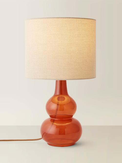 Maguire Burnt Orange Bubble Glass Table Lamp with Linen Shade