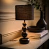 - A matte black table lamp with a stacked globe design. Bring in a simple, modern design with a geometric feel.
