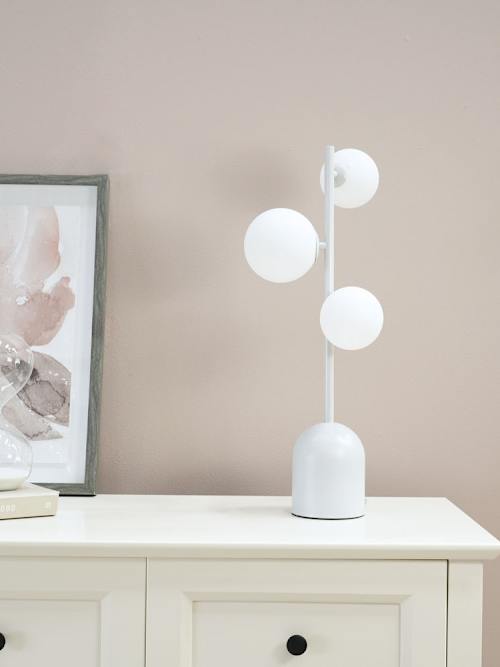 The marlow grey three way table lamp with glass globe shades adds dimension to any space with a triple light source design. The grey finishes and glass globe shades are suited to any modern home looking for a pop of colour, or a hint of an art deco feel. A table lamp with a metal base and stem, three light sources each encased in a glass globe shade. Fitted with a rocker switch on a 15cm cable. An art deco statement piece in a pastel colourway. Three opal glass globe shades on a grey stem and base. Ideal for any spot needing three times the glow. Pop it on any side table in your living room, hallway, bedroom or even kitchen. Requires 3x g9 bulb, max 1w. Personalise your home lighting with