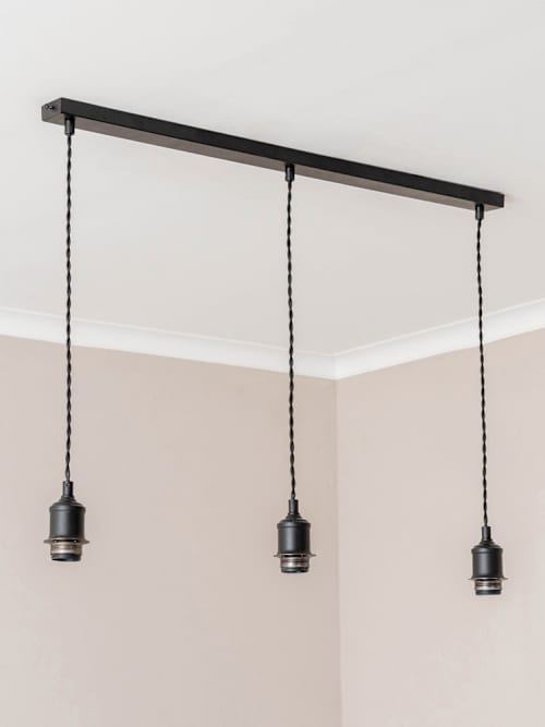 Give your lighting a serious style boost with the Shaw matte black 3 drop bar E27 lamp holder. Sleek, sturdy, and effortlessly cool, it's ready to turn any space into a design masterpiece. Perfect for pendant lighting, it adds instant industrial chic with zero effort. Easy to install, just pop in 3 bulbs and add shades if you like, then bask in your excellent taste. Whether you're going for loft lover vibes or cosy café charm, this beauty delivers. Side effects may include extreme lighting envy!