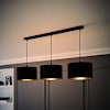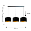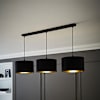 Shaw Matte Black 3 Drop Bar E27 Lamp Holder with Black and Gold Shades