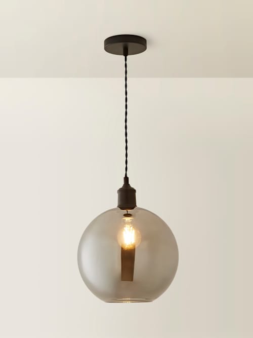 Shaw Black Smoke Glass Globe Pendant Ceiling Light