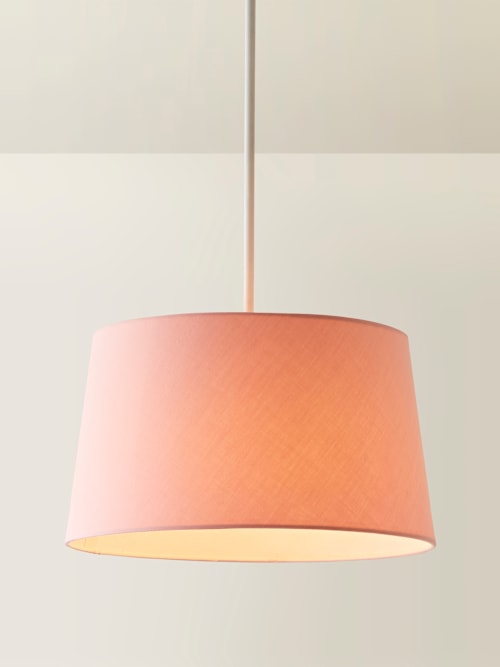 Big shade, big style. The Aspen medium blush pink tapered shade brings sleek elegance to any room, whether it’s topping a lamp or lighting up your ceiling. Its timeless tapered design diffuses a warm, inviting glow, perfect for cosy evenings and chic living spaces. Available in three handy sizes and a variety of colours, it’s a fuss-free way to switch up your look. Whether you’re after bold drama or subtle charm, it’s one simple shade offering endless ways to shine. Our shades come with a 4cm opening for E27 lamp holders, and we’ve added a handy reducer ring that brings it down to 3cm so it’s E14 friendly too.