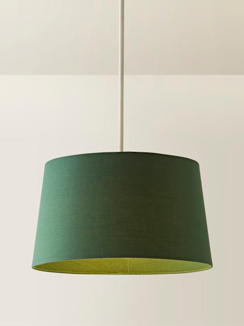Big shade, big style. The Aspen medium forest green tapered shade brings sleek elegance to any room, whether it’s topping a lamp or lighting up your ceiling. Its timeless tapered design diffuses a warm, inviting glow, perfect for cosy evenings and chic living spaces. Available in three handy sizes and a variety of colours, it’s a fuss-free way to switch up your look. Whether you’re after bold drama or subtle charm, it’s one simple shade offering endless ways to shine. Our shades come with a 4cm opening for E27 lamp holders, and we’ve added a handy reducer ring that brings it down to 3cm so it’s E14 friendly too.