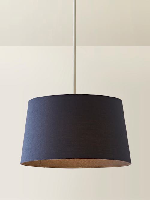 Big shade, big style. The Aspen medium navy tapered shade brings sleek elegance to any room, whether it’s topping a lamp or lighting up your ceiling. Its timeless tapered design diffuses a warm, inviting glow, perfect for cosy evenings and chic living spaces. Available in three handy sizes and a variety of colours, it’s a fuss-free way to switch up your look. Whether you’re after bold drama or subtle charm, it’s one simple shade offering endless ways to shine. Our shades come with a 4cm opening for E27 lamp holders, and we’ve added a handy reducer ring that brings it down to 3cm so it’s E14 friendly too.