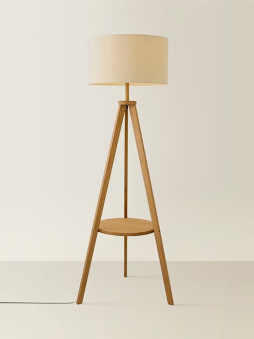 Who doesn’t love a bit of 2-in-1? This gorgeous tripod floor lamp delivers just that, with a handy built-in shelf that’s ideal for your favourite book, a few ornaments, or simply to show off your space-saving skills. With its modern mid wood finish and subtle nod to vintage telescopes of old, the Morrigan fits beautifully into a modern, cosy home décor. Think coastal cottage, core and the warm glow of candles… Bliss. And the look doesn’t stop there! The lamp comes with a natural colour drum shade that bumps the style factor up to 11.