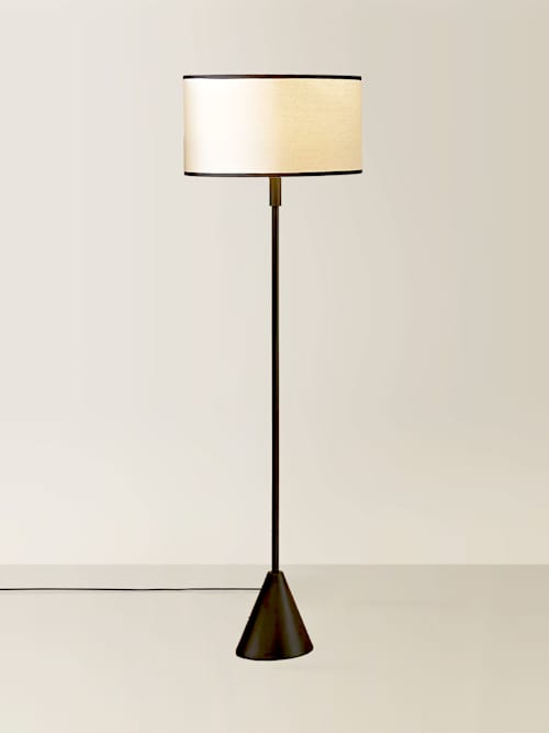 Mitch Black Triangle Floor Lamp with Black Trim Linen Shade