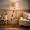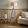 Morrigan is a grey wood tripod floor lamp that blends style and practicality with ease. Its built-in shelf is perfect for keeping your favourite book, a plant, or a cuppa close by, while the large grey shade casts a soft, cosy glow across the room. With its cool tones and simple charm, Morrigan is just the thing to add character, light, and a touch of laid-back elegance to any living space.