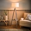 Morrigan is a grey wood tripod floor lamp that blends style and practicality with ease. Its built-in shelf is perfect for keeping your favourite book, a plant, or a cuppa close by, while the large white shade casts a soft, cosy glow across the room. With its cool tones and simple charm, Morrigan is just the thing to add character, light, and a touch of laid-back elegance to any living space.