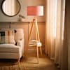 Morrigan Light Wood Tripod Floor Lamp with Large Pink Shade