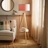 Morrigan is a natural wood tripod floor lamp that blends style and practicality with ease. Its built-in shelf is perfect for keeping your favourite book, a plant, or a cuppa close by, while the large blush pink shade casts a soft, cosy glow across the room. With its warm tones and simple charm, this tripod lamp is just the thing to add character, light, and a touch of laid-back elegance to any living space.