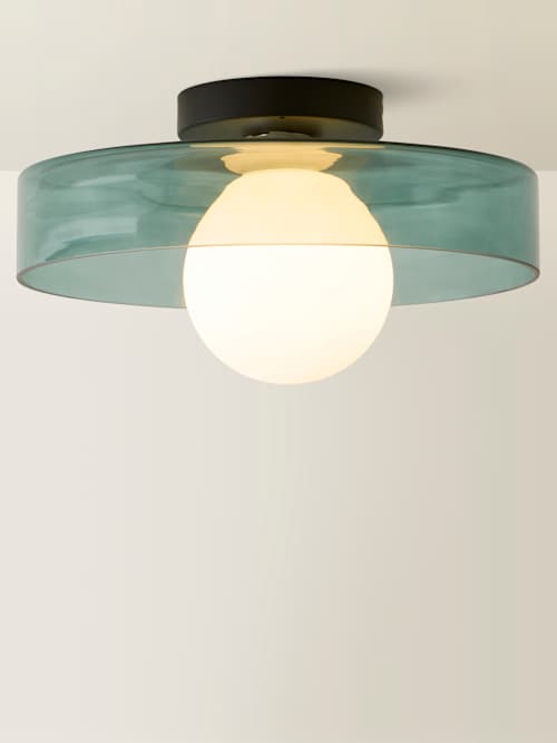Newbury IP44 Jade Green Glass Flush Ceiling Light