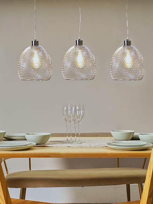 Inspired by a traditional fishing basket, our Novo 3-Way Brushed Chrome Over Table Pendant Light is the ultimate statement piece for your home.