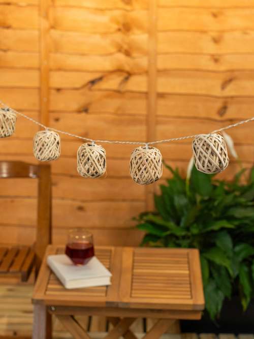 Add some cosy charm to your garden with these battery-powered rattan basket string lights! Featuring a clear cable for a seamless, soft glow and a handy timer function to avoid that "oops, left them on" moment, they're perfect for patios, balconies, or any nook in need of a little extra warmth. No plugs, no mess, just a simple press of a button and your space is instantly lit with effortless style. Perfect for adding a touch of rustic magic with minimal fuss! Batteries required.