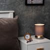 Touch Pair of Brushed Chrome Table Lamps with Grey Shades