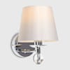 These wall lights feature a sleek chrome design with a grey shade, complimenting a variety of modern interiors