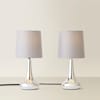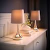 Teardrop Pair of Chrome Touch Table Lamps with Grey Shades