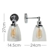 Ezrah Pair of Chrome Wall Lights with Glass Dome Shades