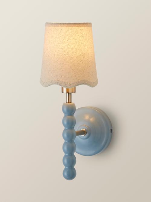 Bobbles Pair of Powder Blue Bobbin Wall Lights with Natural Scalloped Shades
