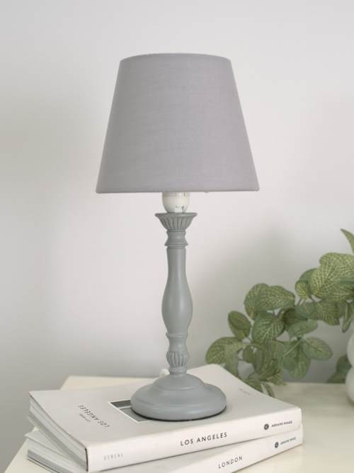 Sara Pair of Grey Candle Stick Table Lamps