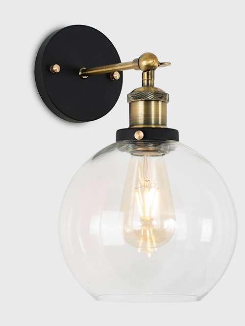 Turn up the style with this striking pair of Sheridan wall lights! Featuring a bold black and gold finish and sleek clear glass globes, they bring an industrial edge to any room. Perfect for hallways, bedrooms, or either side of a mirror or bed. Add 2 x 4W ES E27 bulbs (one per light) and enjoy a crisp, modern glow with serious character. Stylish, versatile, and totally eye-catching. Explore the rest of the Sheridan range for the full look!
