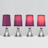 Pair of Small Trumpet Touch Table Lamps in Chrome with Purple Shades