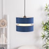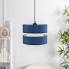 The Sophia small navy easy fit shades are a new, exciting take on a classic fabric shade design. With a cylindrical shade at the core, with two stacked shades on the outer.