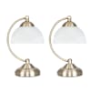Stamford Pair of Antique Brass Table Lamps with Glass Shades