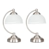 Stamford Pair of Brushed Chrome Table Lamps with Glass Shades
