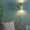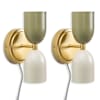 Tate Pair of Up Down Plug-in Wall Lights with Khaki and Cream Shades