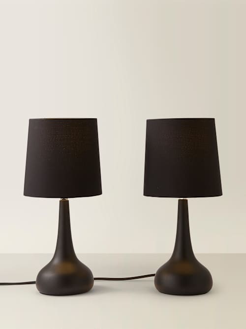 Double the glow, double the charm. This pair of teardrop touch lamps brings effortless warmth to any space, with smooth metallic black bases and matching black shades that glow beautifully. Tap to dim, tap to brighten, tap just because. The touch control makes mood-setting irresistibly easy. Perfect for bedside symmetry, living-room glow-ups or anywhere that could use a little sparkle in twos.